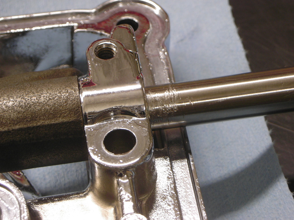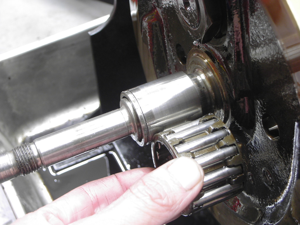 もう一つ注目する点なのですが、インナーレースに溝がきざんであるのがわかると思います。この溝はローラーベアリングが移動しないようにリテーニングリングがはまっている溝なのですが、リングが見当たりません。